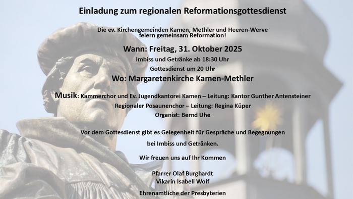 18.30 Uhr Einladung zum Zusammensein, 20 Uhr Regionalgottesdienst Methler